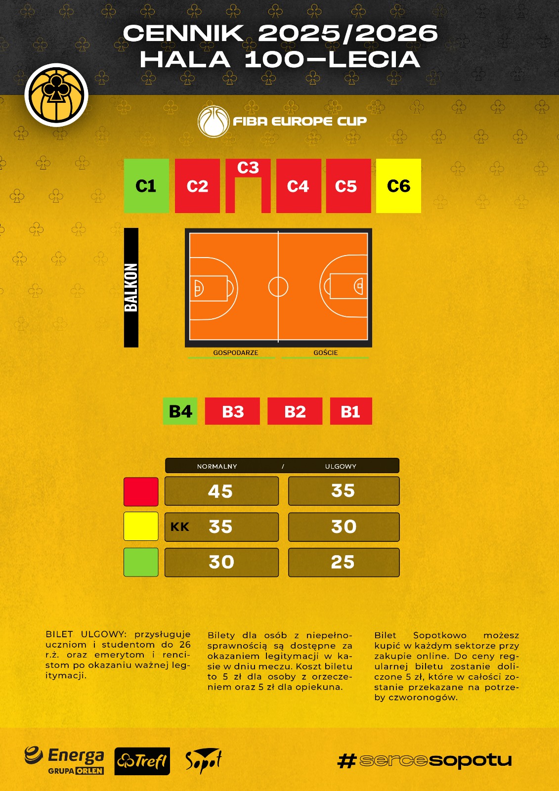 Europejskie puchary wracają do Hali 100-lecia! W środę 15 października o 19:15 koszykarze Energi Trefla Sopot rozegrają pierwsze spotkanie w ramach FIBA Europe Cup 2025/2026. Rywalem żółto-czarnych będzie azerskie Neftchi IK. Bądźmy z naszą drużyną i głośnym dopingiem pomóżmy jej rozpocząć rozgrywki od wygranej!